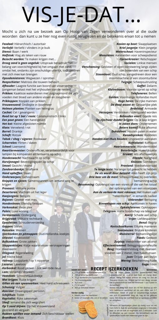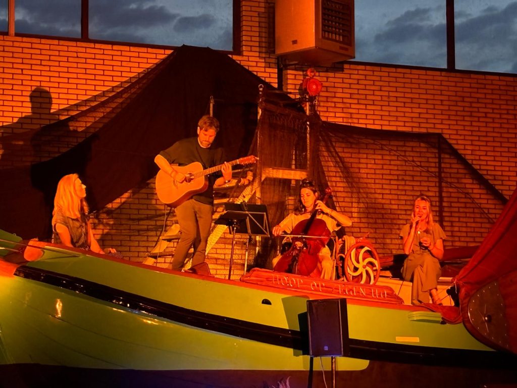 Er werd ook buiten gespeeld: er vond een hartverscheurend afscheid plaats tussen Kniertje en Barend, waarna de aak ‘Op Hoop van Zegen’ daadwerkelijk vertrok. Daarna genoot het publiek van een stukje zalm van The man with the fish.